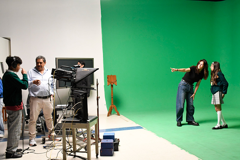 Posteriormente, el grupo realizó un recorrido guiado por las instalaciones del ILCE, conociendo de cerca las distintas áreas que integran al Instituto. La experiencia incluyó una visita al área de Producción Audiovisual, donde los estudiantes participaron en una práctica de grabación en un estudio de televisión. Asimismo, llevaron a cabo una práctica radiofónica en las cabinas profesionales del ILCE, permitiéndoles explorar de manera vivencial los procesos técnicos y creativos propios de los medios de comunicación.